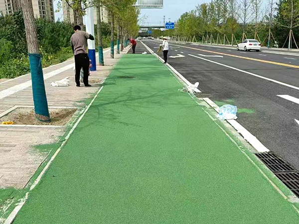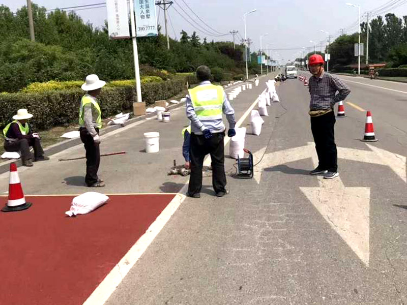 山東世紀聯(lián)成新材料科技有限公司,我公司生產銷售彩色陶瓷顆粒、彩色防滑膠水、聚脲等。我公司有經驗豐富的施工團隊,承接全國彩色路面、防滑路面、路面改色、彩色透水混凝土、景觀道路、等工程。